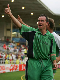 Johnston, who led Ireland in the 2007 World Cup, does a lap of honour after his team beat Pakistan at Kingston in that tournament (source – vgreets.com)