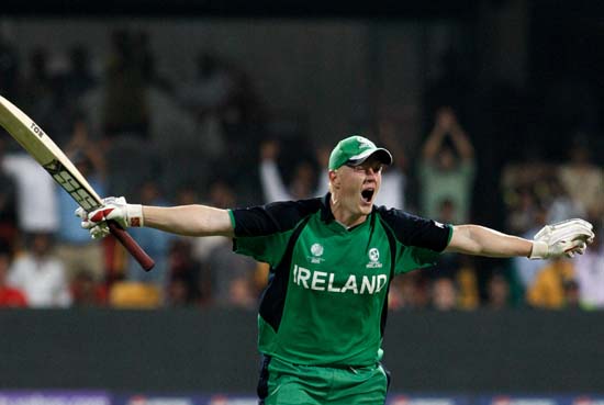 Ireland had shocked the cricketing world by beating Pakistan after having tied with Zimbabwe in the league stage of the 2007 World Cup, thus leapfrogging both teams to earn a dream place in the super 8 round. In their very first Super 8 game, they took on England. The highly accurate Irish bowlers had England on a tight leash, first at 23/2 – Boyd Rankin removing both openers – and then 113/4 in the 27th over, but Paul Collingwood smacked 90 from 82 balls to propel his side to a healthy 266/7.