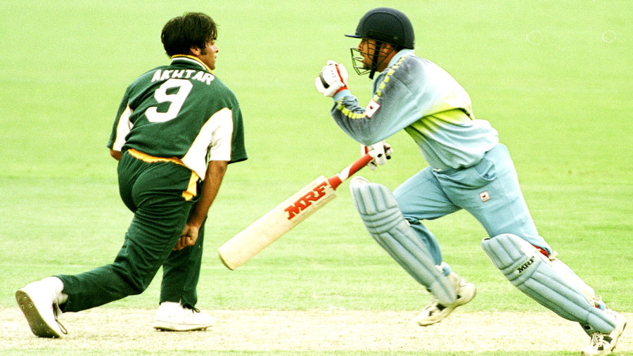 Sachin Tendulkar runs past Shoaib Akhtar at Adelaide in 1999-00. Arch-rivals India and Pakistan have clashed in 129 ODIs against each other till date (source – gettyimages)